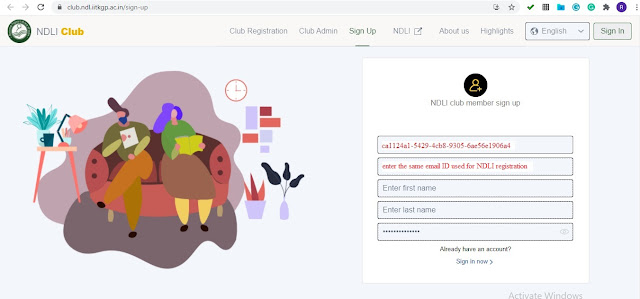 e) Login to https://club.ndl.iitkgp.ac.in/sign-in, using the email ID and password used in Step 1